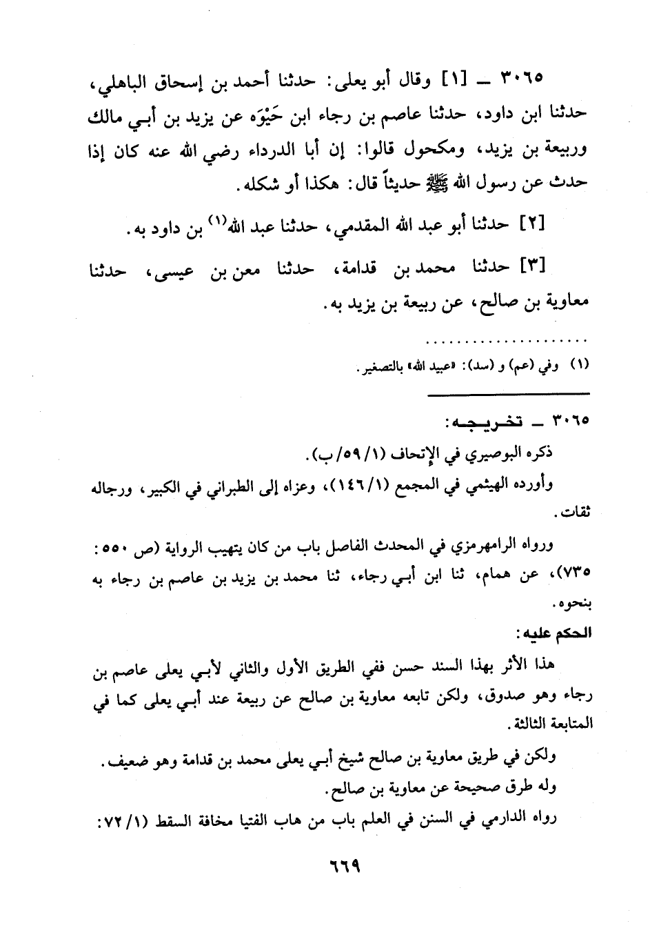 3065 -[1] وقال أَبُو يَعْلَى: حدثنا أَحْمَدُ بن إسحاق الباهلي، حدثنا ابن دَاوُدُ، حدثنا عاصم بن رَجَاءِ ابن حَيْوَةَ عَنْ يَزِيدَ بْنِ أَبِي مَالِكٍ وَرَبِيعَةَ بْنِ يزيد، ومكحول قالوا: أَنَّ أَبَا الدَّرْدَاءِ رَضِيَ الله عَنْه كَانَ §إِذَا حَدَّثَ عَنْ رَسُولِ اللَّهِ صَلَّى اللَّهُ عَلَيْهِ وَسَلَّمَ حَدِيثًا قَالَ: هَكَذَا أَوْ شَكْلُهُ.