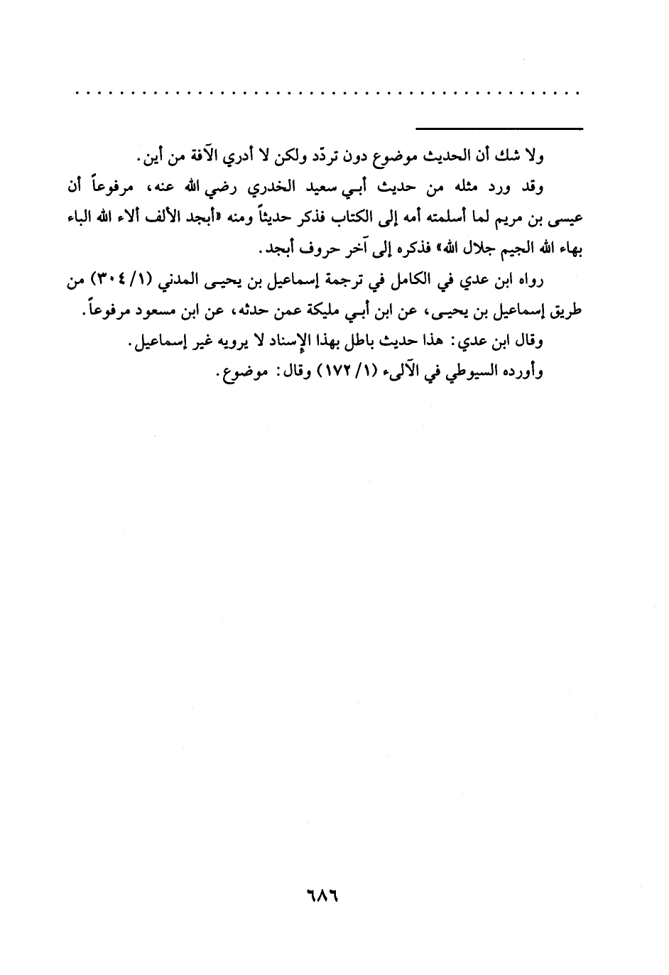 وقال ابن عديّ: هذا حديث باطل بهذا الإسناد لا يرويه غير إسماعيل.