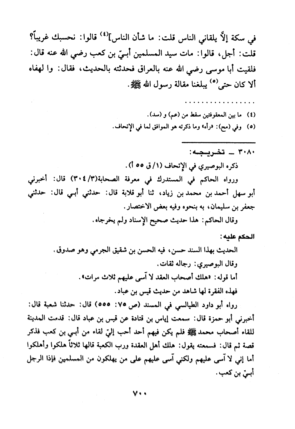 رواه أبو داود الطيالسي في المسند (ص 75: 555) قال: حدّثنا شعبة قال: أخبرني أبو حمزة قال: سمعت أياس بن قتادة عن قيس بن عباد قال: قدمت المدينة للقاء أصحاب محمَّد -صلى الله عليه وسلم- فلم يكن فيهم أحب إلي لقاء من أبي بن كعب فذكر قصة ثم قال: فسمعته يقول: هلك أهل العقدة ورب الكعبة قالها ثلاثًا هلكوا وأهلكوا أما إني لا آسي عليهم ولكني آسي عليهم علي من يهلكون من المسلمين فإذا الرجل أبيّ بن كعب. =