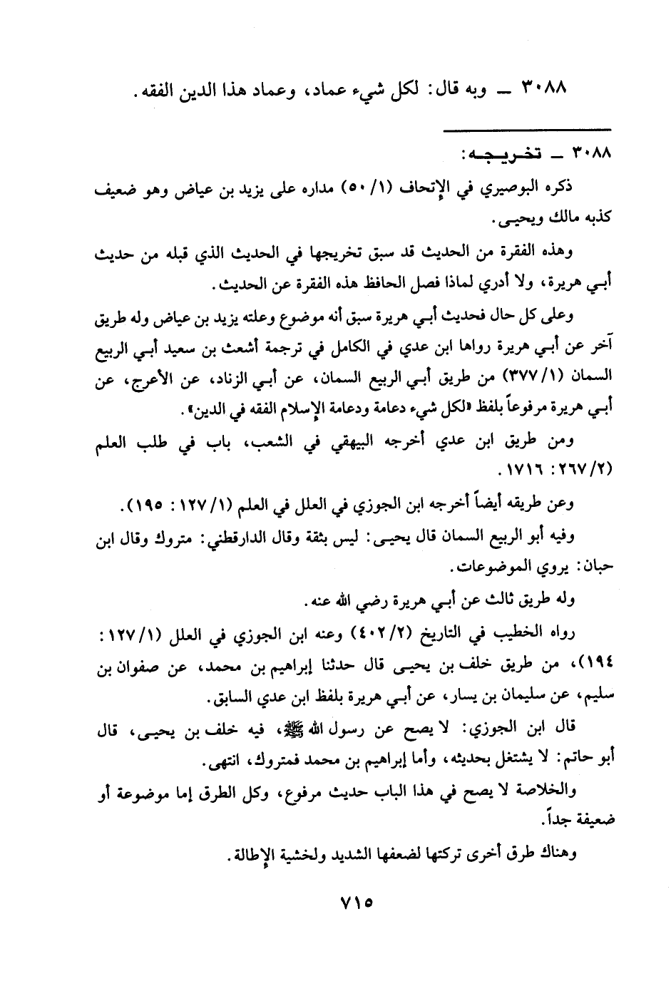 3088 - وَبِهِ قَالَ: §لِكُلِّ شَيْءٍ عِمَادٌ، وَعِمَادُ هَذَا الدِّينِ الْفِقْهُ.