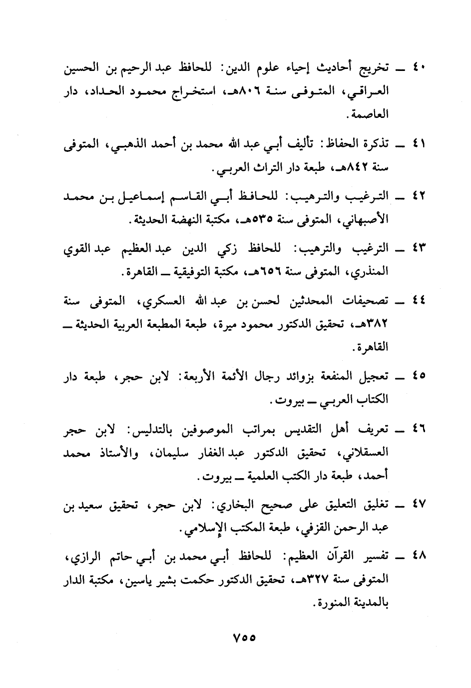 40 - تخريج أحاديث إحياء علوم الدين: للحافظ عبد الرحيم بن الحسين العراقي، المتوفَّى سنة 806 هـ، استخراج محمود الحداد، دار العاصمة.