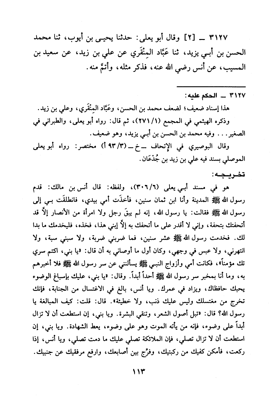 3127 - [2] وَقَالَ أَبُو يَعْلَى: حَدَّثَنَا يَحْيَى بْنُ أَيُّوبَ، ثنا محمَّد الْحَسَنِ بْنِ أَبِي يَزِيدَ، ثنا عَبَّاد المِنْقَري عَنْ عَلِيِّ بْنِ زَيْدٍ، عَنْ سَعِيدِ بْنِ المسيّب، عن أنس رضي الله عنه، نذكر مثله، وأتمَّ منه.