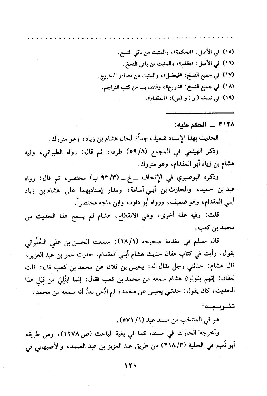 قال مسلم في مقدمة صحيحه (1/ 18): سمعت الحسن بن علي الحُلْواني يقول: رأيت في كتاب عفان حديث هشام أبي المقدام، حديث عمر بن عبد العزيز، قال هشام: حدثني رجل يقال له: يحيى بن فلان عن محمَّد بن كعب قال: قلت لعفان: إنهم يقولون هشام سمعه من محمَّد بن كعب فقال: إنما ابتُلِيَ من قِبَلِ هذا الحديث، كان يقول: حدثني يحيى عن محمَّد، ثم ادّعى بعدُ أنه سمعه من محمَّد.