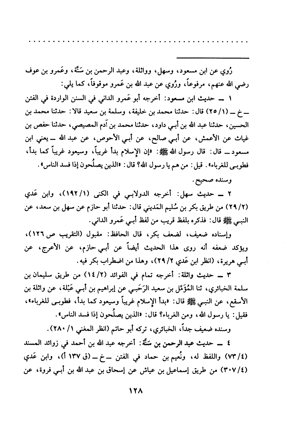 مَسْعُودٍ- قَالَ: قَالَ رَسُولُ اللَّهِ -صَلَّى اللَّهُ عليه وسلم-: "إن الإِسلام بدا غريبًا، وسيعود غريبًا كما بدأ،