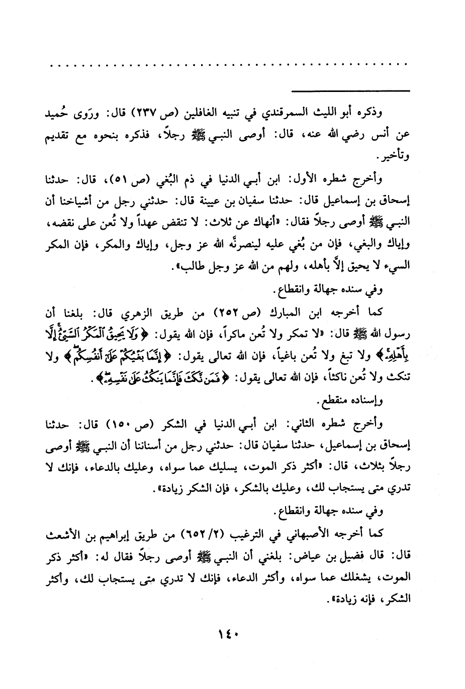 = وذكره أبو الليث السمرقندي في تنبيه الغافلين (ص 237) قال: ورَوى حُميد عن أنس رضي الله عنه، قال: أوصى النبي -صلى الله عليه وسلم- رجلًا، فذكره بنحوه مع تقديم وتأخير.