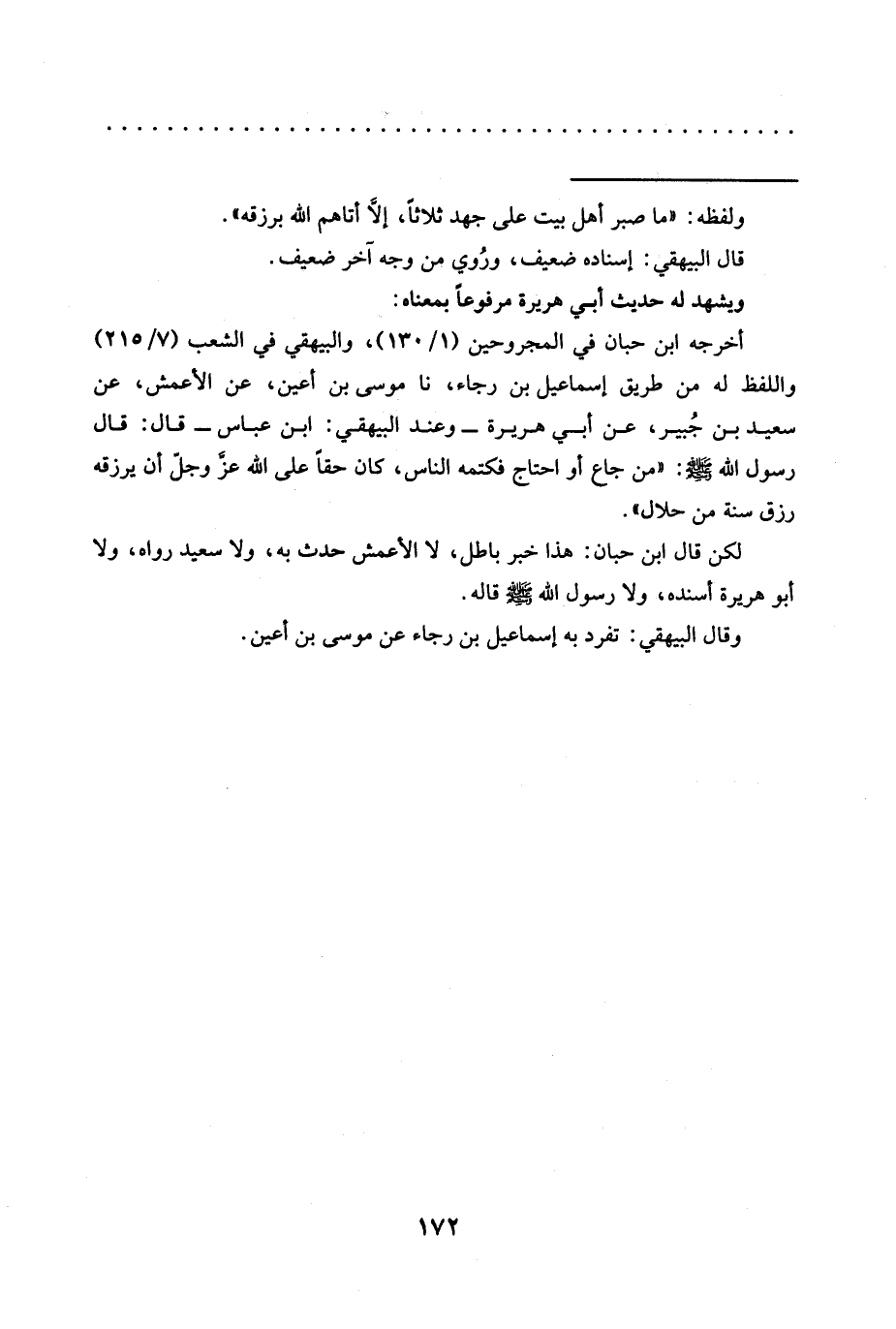 = ولفظه: "ما صبر أهل بيت على جهد ثلاثًا، إلّا أتاهم الله برزقه".