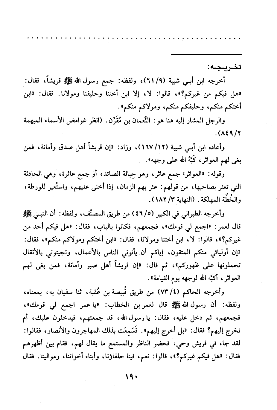 وأعاده ابن أبي شيبة (12/ 167)، وزاد: "إن قريشًا أهل صدق وأمانة، فمن بغى لهم العواثر، كَبَّهُ الله على وجهه".