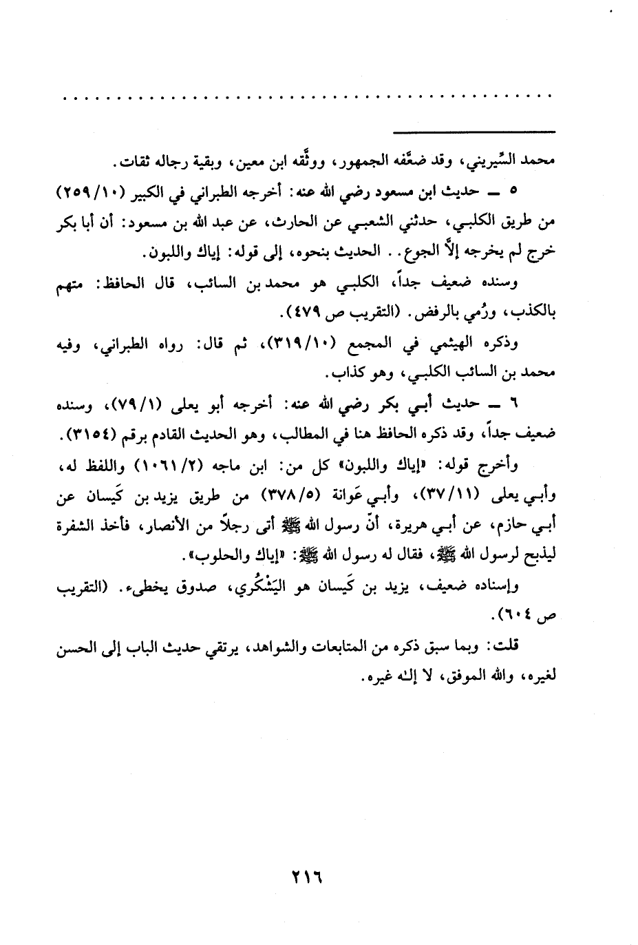 5 - حديث ابن مسعود رضي الله عنه: أخرجه الطبراني في الكبير (10/ 259) من طريق الكلبي، حدثني الشعبي عن الحارث، عن عبد الله بن مسعود: أن أبا بكر خرج لم يخرجه إلَّا الجوع .. الحديث بنحوه، إلى قوله: إياك واللبون.