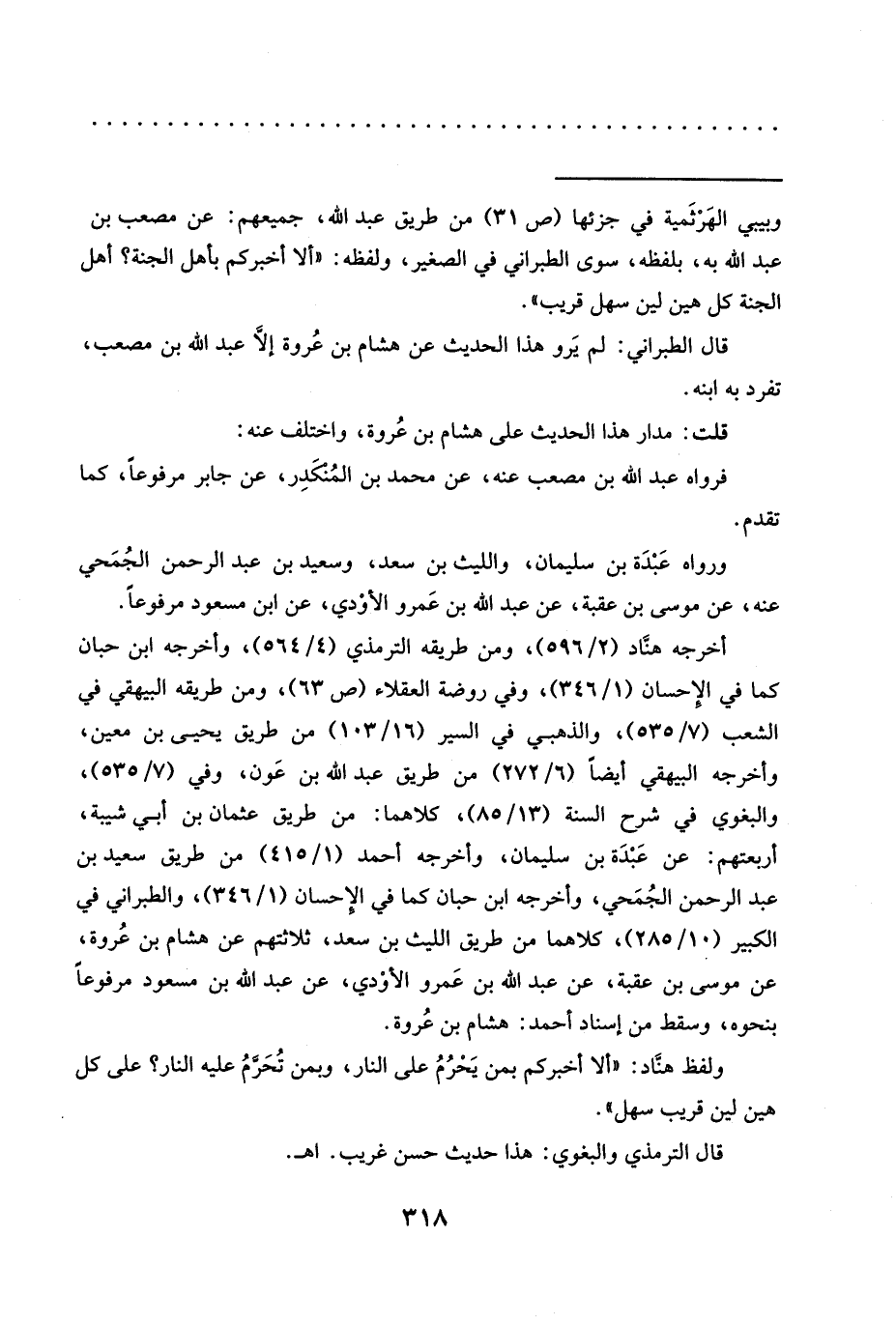 = وبيبي الهَرْثَمية في جزئها (ص 31) من طريق عبد الله، جميعهم: عن مصعب بن عبد الله به، بلفظه، سوى الطبراني في الصغير، ولفظه: "ألا أخبركم بأهل الجنة؟ أهل الجنة كل هين لين سهل قريب".