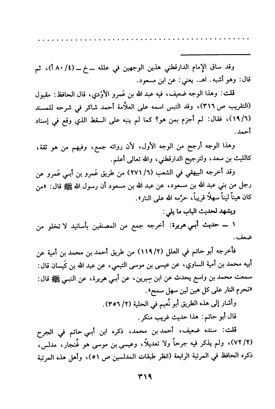 = وقد ساق الإمام الدارقطني هذين الوجهين في علله -خ- (4/ 80 أ)، ثم قال: وهو أشبه. أهـ. يعني: عن ابن مسعود.