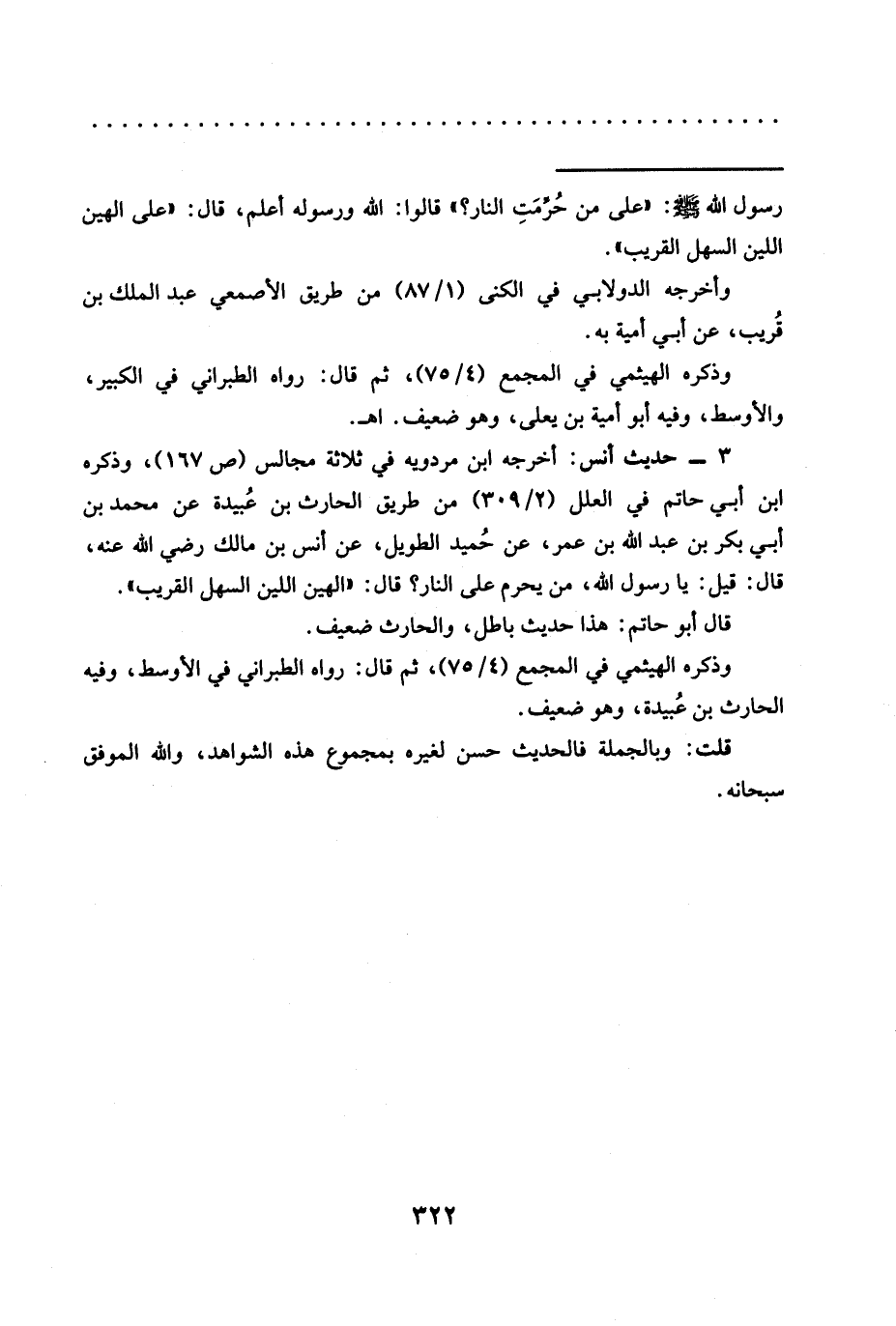 3 - حديث أنس: أخرجه ابن مردويه في ثلاثة مجالس (ص167)، وذكره ابن أبي حاتم في العلل (2/ 309) من طريق الحارث بن عُبيدة عن محمد بن أبي بكر بن عبد الله بن عمر، عن حُميد الطويل، عَنْ أَنَسِ بْنِ مَالِكٍ رَضِيَ اللَّهُ عَنْهُ، قال: قيل: يا رسول الله، من يحرم على النار؟ قال: "الهين اللين السهل القريب".