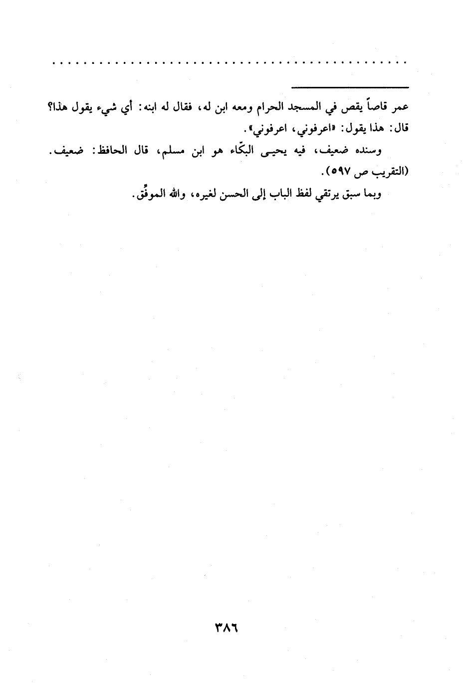 = عمر قاصًا يقص في المسجد الحرام ومعه ابن له، فقال له ابنه: أي شيء يقول هذا؟ قال: هذا يقول: "اعرفوني، اعرفوني".