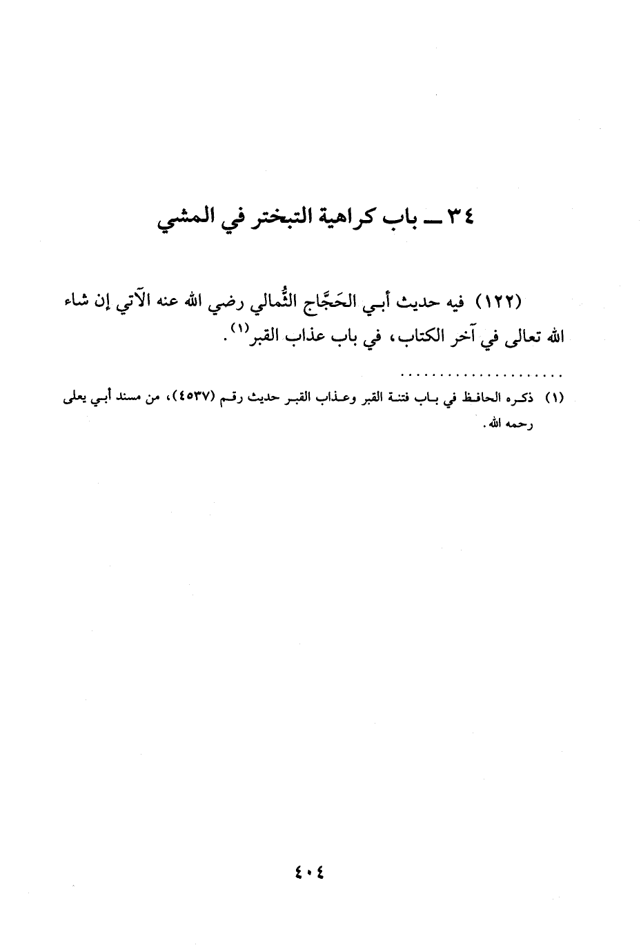 34 - بَابُ كَرَاهِيَةِ التَّبَخْتُرِ فِي الْمَشْي