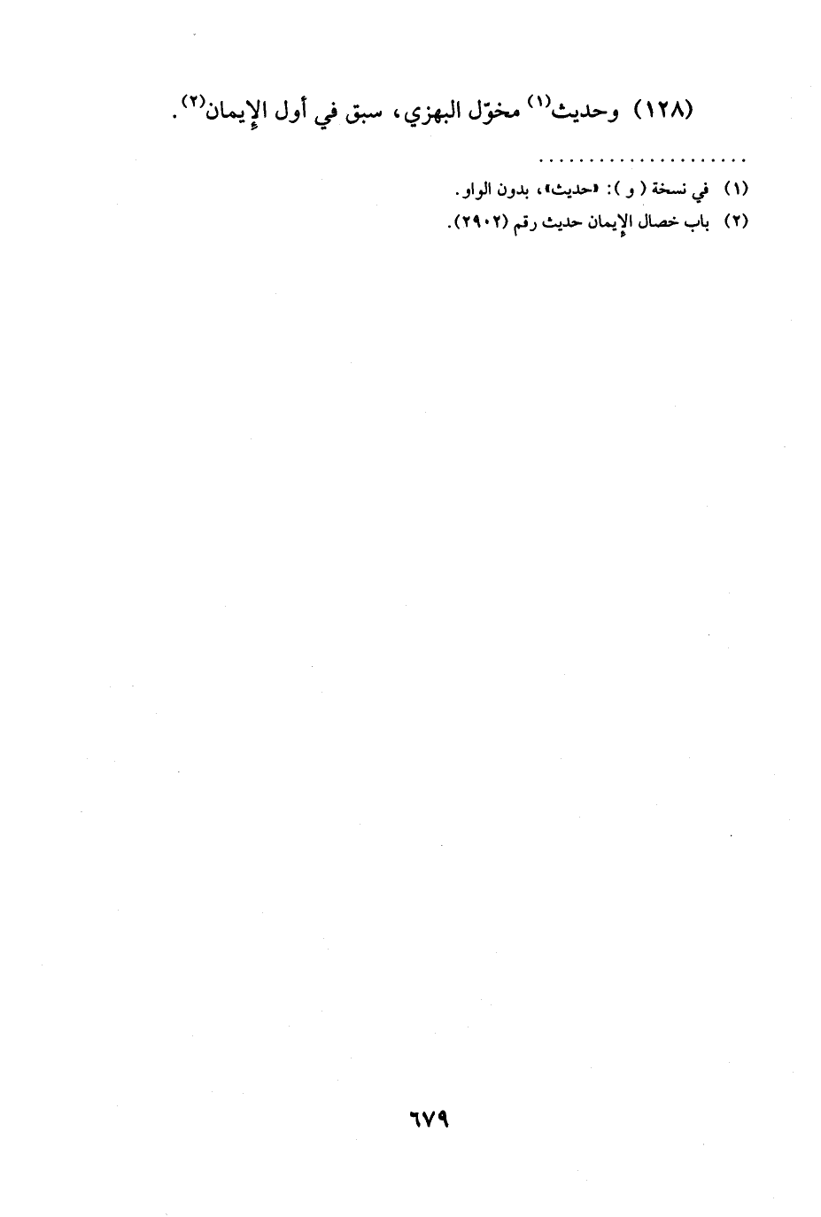 (128) وحديث (¬1) مخوّل البهزي، سبق في أول الإِيمان (¬2)