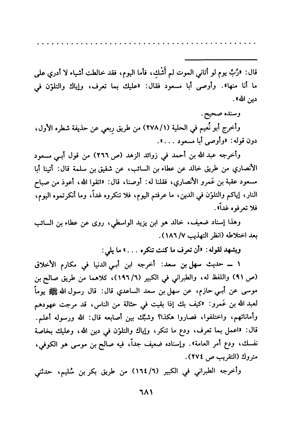 1 - حديث سهل بن سعد: أخرجه ابن أبي الدنيا في مكارم الأخلاق (ص 91) واللفظ له، والطبراني في الكبير (6/ 196)، كلاهما من طريق صالح بن موسى عَنْ أَبِي حَازِمٍ، عَنْ سَهْلِ بْنِ سَعْدٍ السَّاعِدِيِّ قَالَ: قَالَ رَسُولُ اللَّهِ -صَلَّى اللَّهُ عَلَيْهِ وسلم- يومًا لعبد الله بن عَمرو: "كيف بك إذا بقيت في حثالة من الناس، قد مرجت عهودهم وأماناتهم، واختلفوا، فصاروا هكذا؟ وشبَّك بين أصابعه قال: الله ورسوله أعلم.