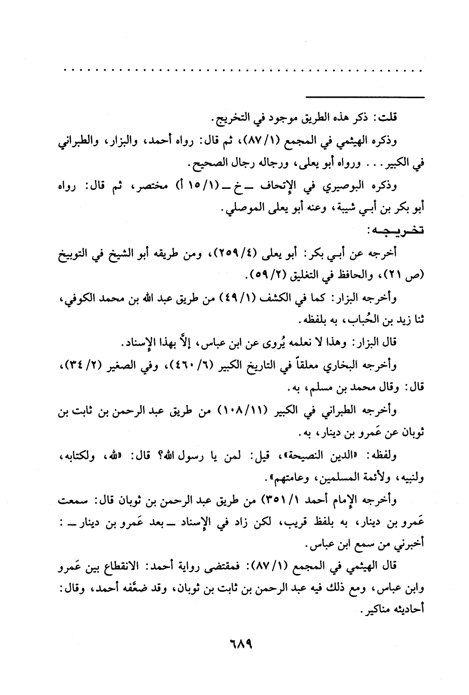 قال الهيثمي في المجمع (1/ 87): فمقتضى رواية أحمد: الانقطاع بين عَمرو وابن عباس، ومع ذلك فيه عبد الرحمن بن ثابت بن ثوبان، وقد ضعَّفه أحمد، وقال: أحاديثه مناكير. =