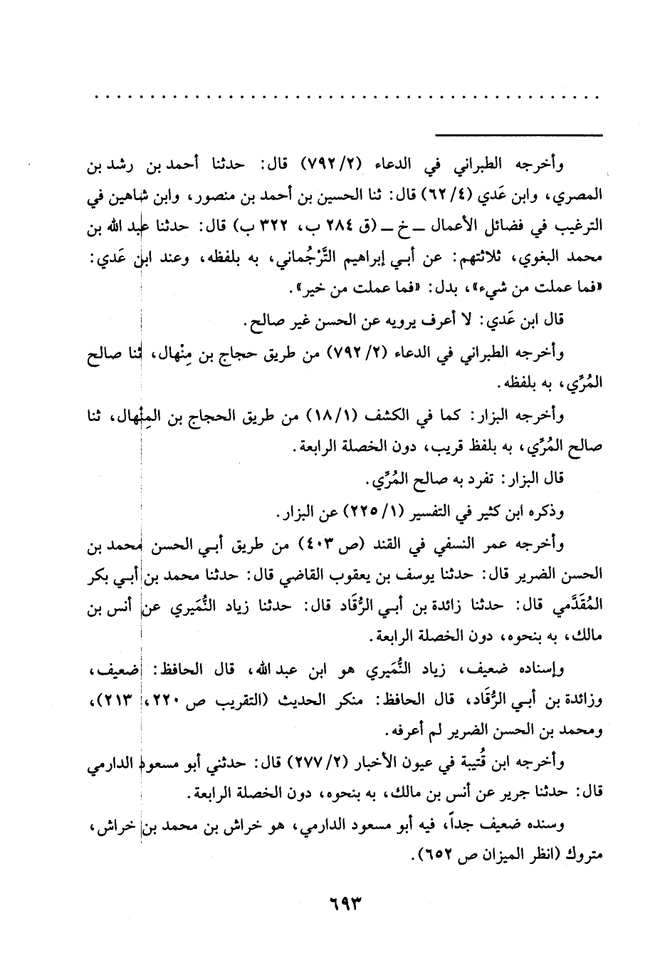وسنده ضعيف جدًا، فيه أبو مسعود الدارمي، هو خراش بن محمَّد بن خراش، متروك (انظر الميزان ص 652). =