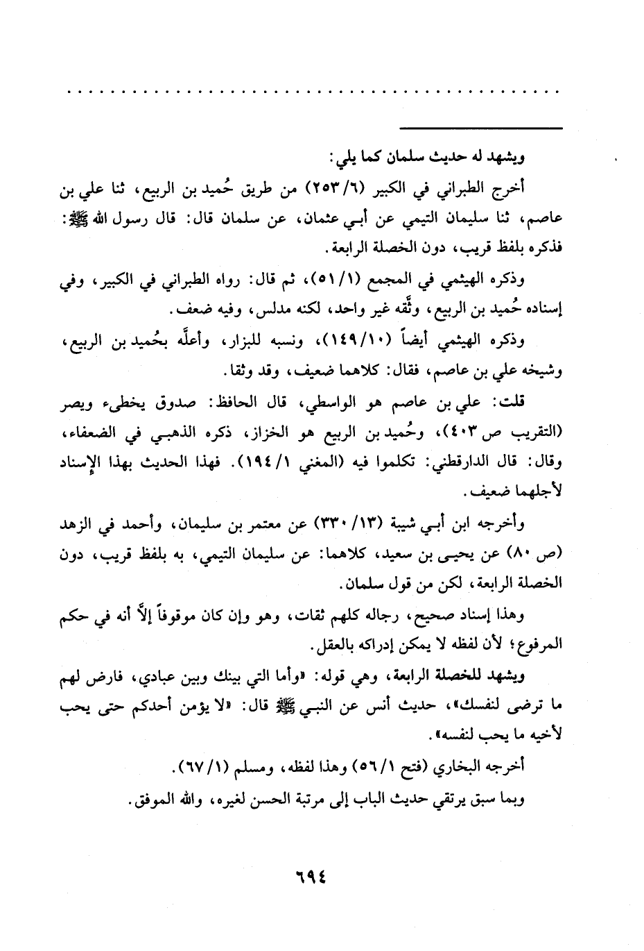 ويشهد للخصلة الرابعة، وهي قوله: "وَأَمَّا الَّتِي بَيْنَكَ وَبَيْنَ عِبَادِي، فَارْضَ لَهُمْ ما ترضى لنفسك"، حديث أَنَسٍ عَنِ النَّبِيِّ -صَلَّى اللَّهُ عَلَيْهِ وَسَلَّمَ-قال: "لا يؤمن أحدكم حتى يحب لأخيه ما يحب لنفسه".