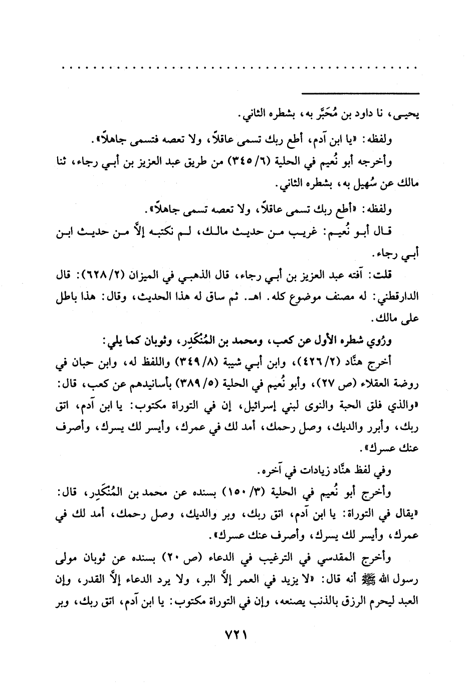 ولفظه: "يَا ابْنَ آدَمَ، أَطِعْ رَبَّكَ تُسَمَّى عَاقِلًا، ولا تعصه فتسمى جاهلًا".