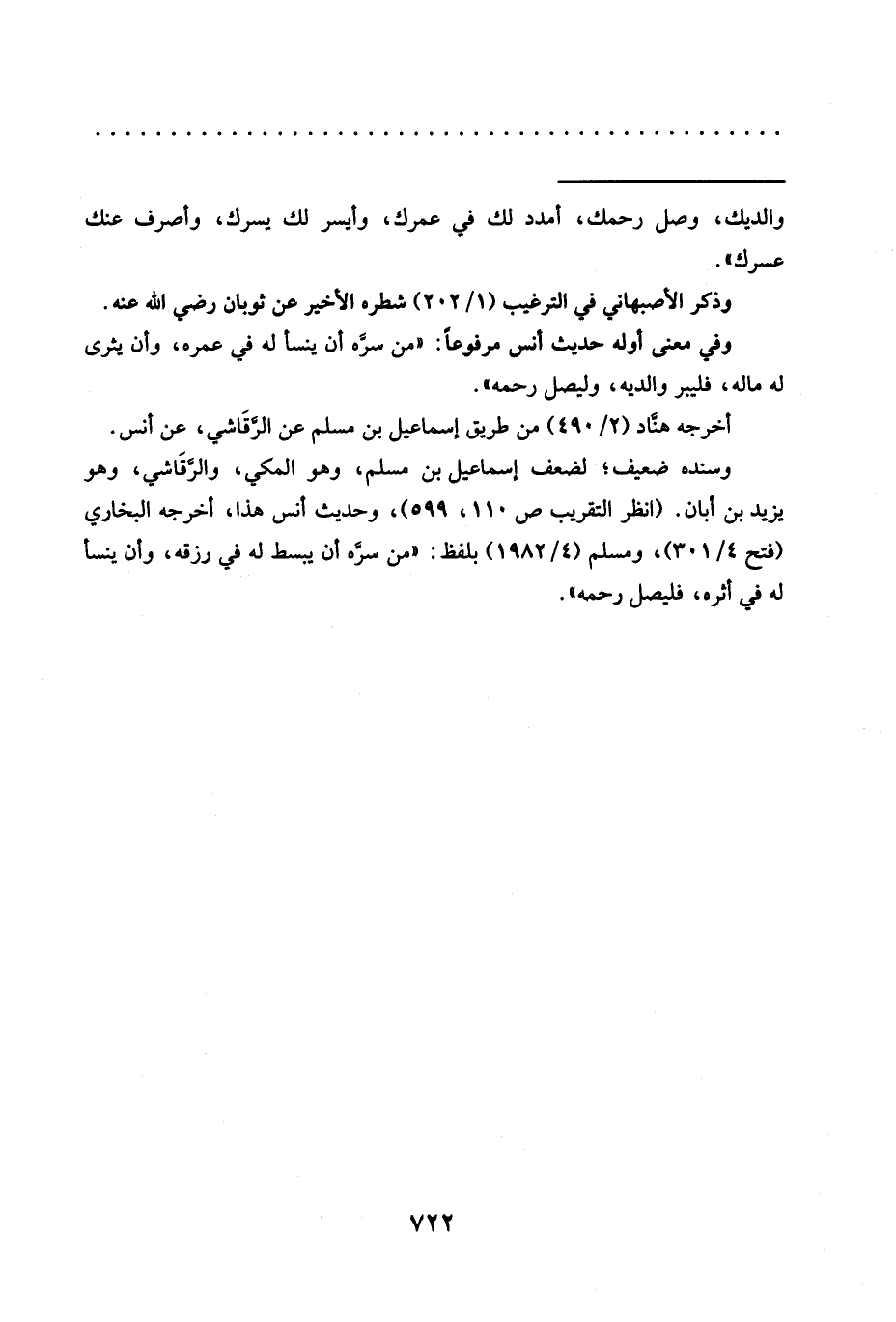 وسنده ضعيف؛ لضعف إسماعيل بن مسلم، وهو المكي، والرَّقاشي، وهو يزيد بن أبان. (انظر التقريب ص 110، 599)، وحديث أنس هذا، أخرجه البخاريُّ (فتح 4/ 301)، ومسلم (4/ 1982) بلفظ: "من سرَّه أن يبسط له في رزقه، وأن ينسأ له في أثره، فليصل رحمه".
