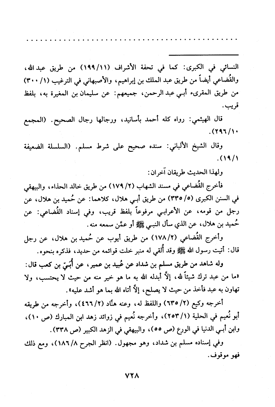 فأخرج القُضاعي في مسند الشهاب (2/ 179) من طريق خالد الحذاء، والبيهقيُّ في السنن الكبرى (5/ 335) من طريق أبي هلال، كلاهما: عن حُميد بن هلال، عن رجل من قومه، عن الأعرابي مرفوعًا بلفظ قريب، وفي إسناد القُضاعي: عن حُميد بن هلال، عن الذي سأل النبي -صلى الله عليه وسلم- أو عمَّن سمعه منه.