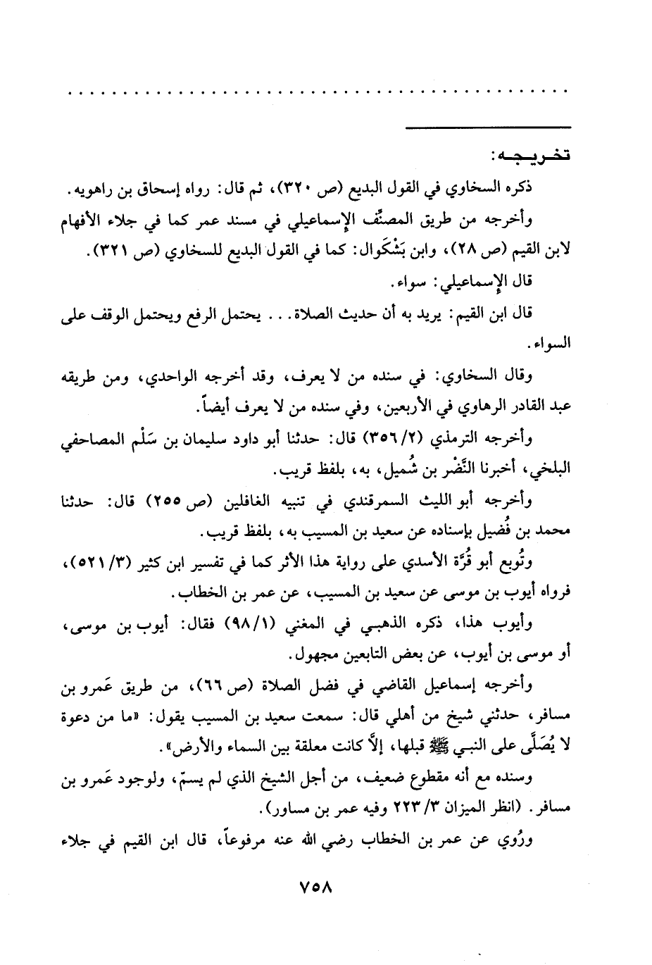 ورُوي عن عمر بن الخطاب رضي الله عنه مرفوعًا، قال ابن القيم في جلاء =