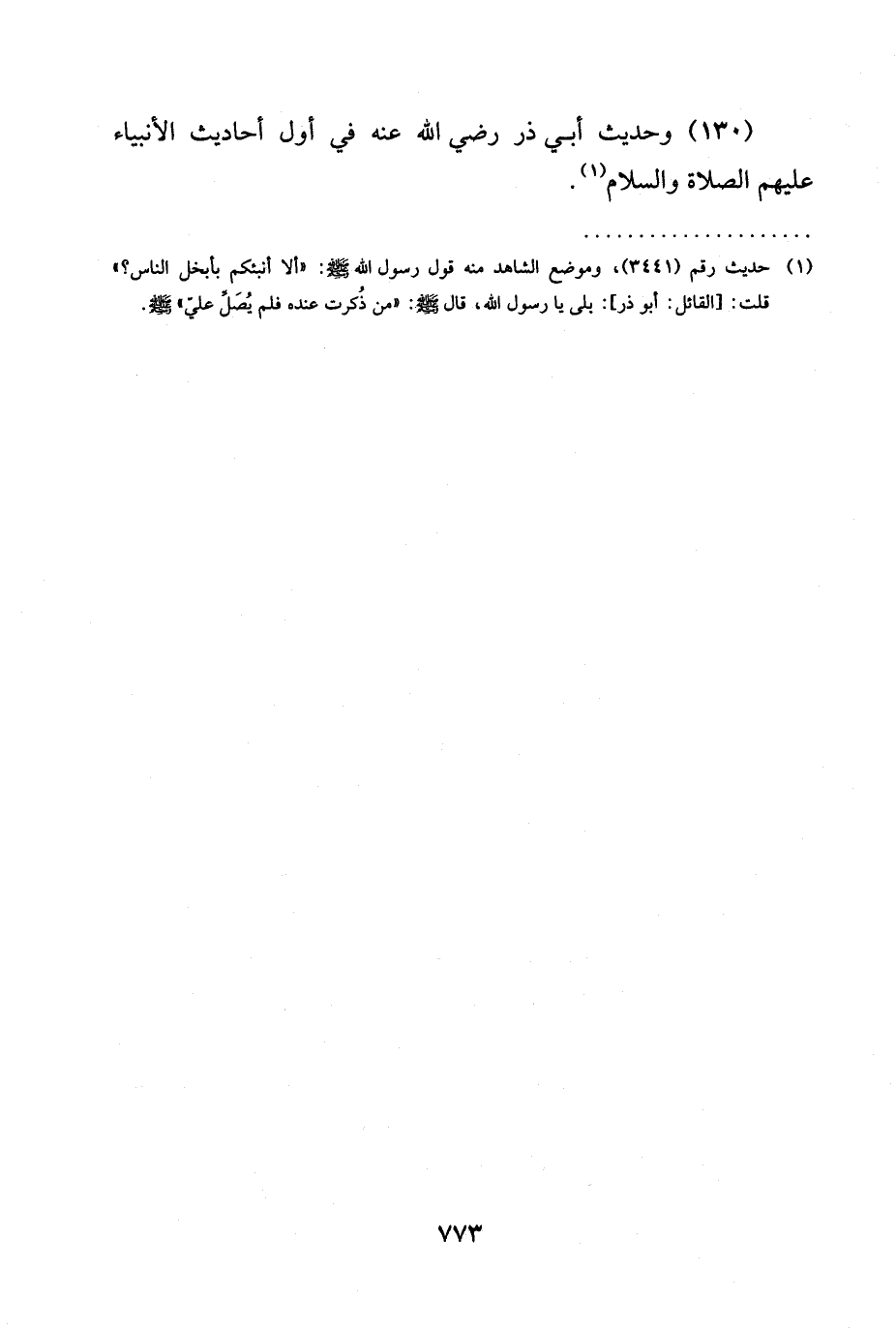 (130) وَحَدِيثُ أَبِي ذَرٍّ رَضِيَ اللَّهُ عَنْهُ فِي أَوَّلِ أحاديث الأنبياء عليهم الصلاة والسلام (¬1).