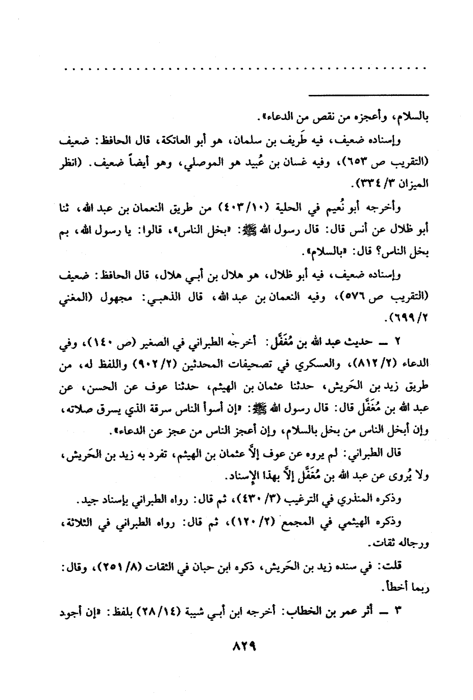 2 - حديث عبد الله بن مُغَفَّل: أخرجه الطبراني في الصغير (ص 140)، وفي الدعاء (2/ 812)، والعسكري في تصحيفات المحدثين (2/ 902) واللفظ له، من طريق زيد بن الحَريش، حدّثنا عثمان بن الهيثم، حدّثنا عَوْفٌ عَنِ الْحَسَنِ، عَنْ عَبْدِ اللَّهِ بْنِ مُغَفَّل قَالَ: قَالَ رَسُولُ اللَّهِ -صَلَّى اللَّهُ عَلَيْهِ وسلم-: " إن أسوأ الناس سرقة الذي يسرق صلاته، وإن أبخل الناس من بخل بالسلام؛ وإن أعجز الناس من عجز عن الدعاء".