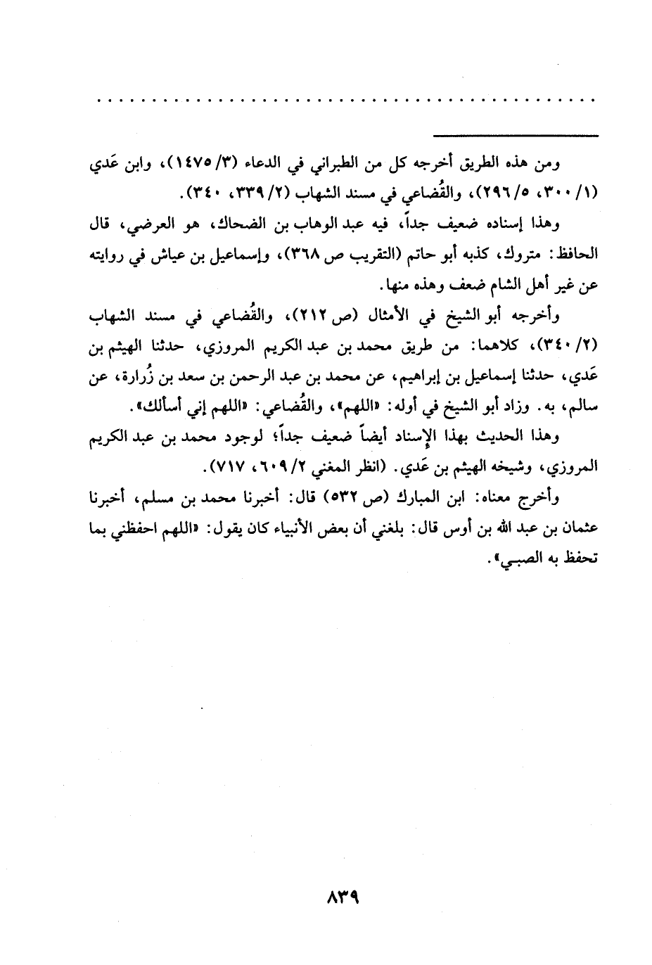 = ومن هذه الطريق أخرجه كل من الطبراني في الدعاء (3/ 1475)، وابن عَدي (1/ 300، 5/ 296)، والقُضاعي في مسند الشهاب (2/ 339، 340).
