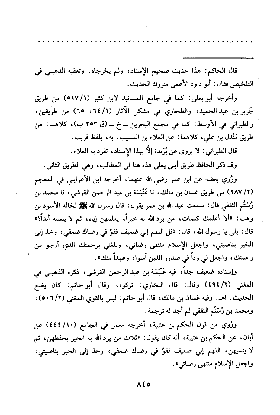 ورُوي من قول الحكم بن عتيبة، أخرجه معمر في الجامع (10/ 444) عن أبان، عن الحكم بن عتيبة، أنه كان يقول: "ثلاث من يرد الله به الخير يحفظهن، ثم لا ينسيهن، اللَّهُمَّ إِنِّي ضَعِيفٌ فقوِّ فِي رِضَاكَ ضَعْفِي، وَخُذْ إِلَى الْخَيْرِ بِنَاصِيَتِي، وَاجْعَلِ الإِسلام مُنْتَهَى رضائي".