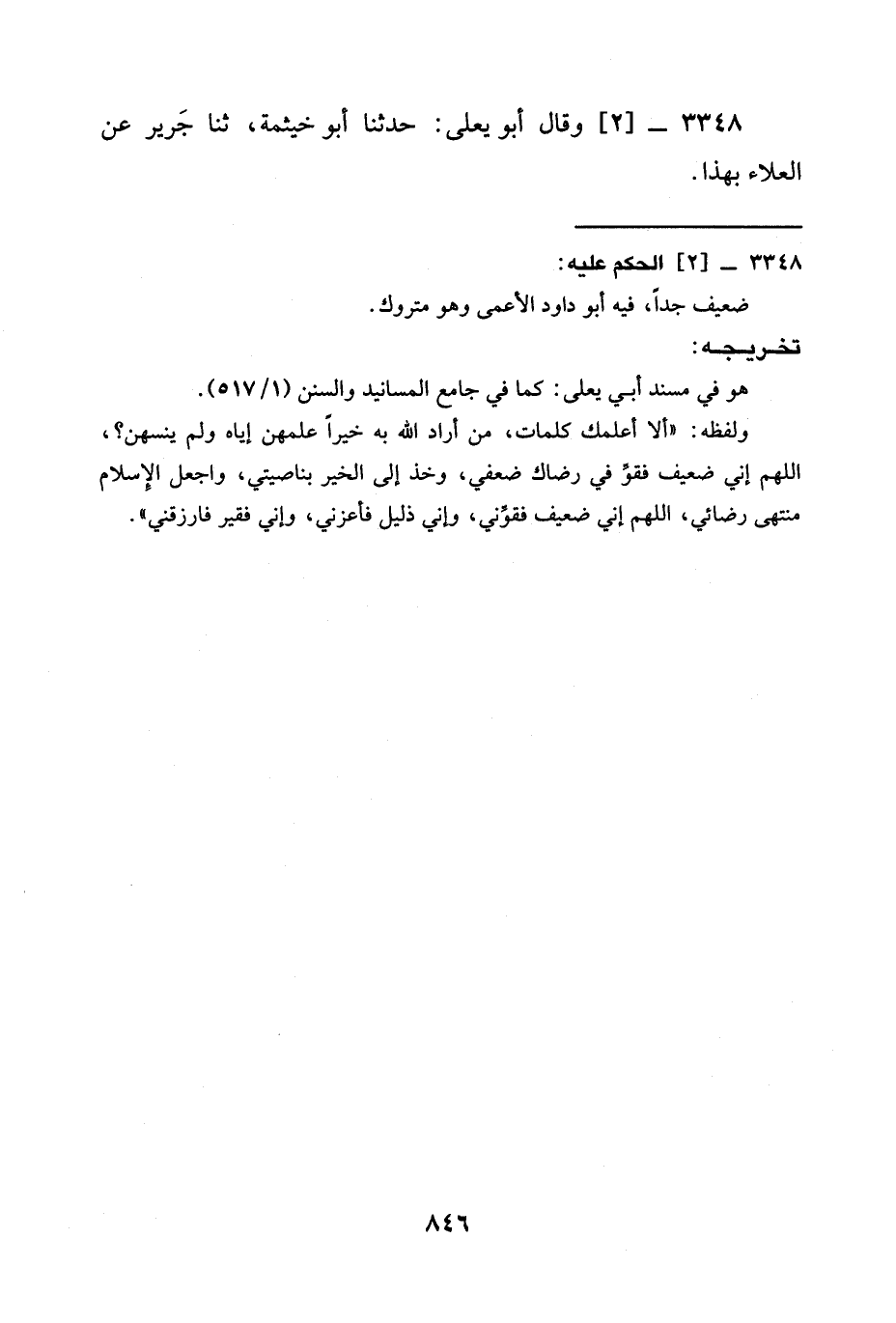 3348 - [2] وَقَالَ أَبُو يَعْلَى: حَدَّثَنَا أَبُو خَيْثَمَةَ، ثنا جَرير عن العلاء بهذا.