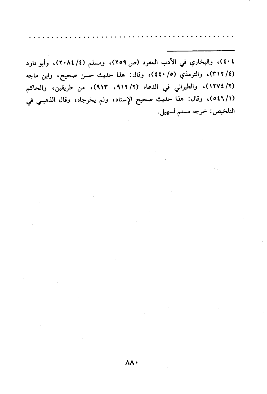 = 404)، والبخاري في الأدب المفرد (ص 259)، ومسلم (4/ 2084)، وأبو داود (4/ 312)، والترمذي (5/ 440)، وقال: هذا حديث حسن صحيح، وابن ماجه (2/ 1274)، والطبراني في الدعاء (2/ 912، 913)، من طريقين، والحاكم (1/ 546)، وقال: هذا حديث صحيح الإسناد، ولم يخرجاه، وقال الذهبي في التلخيص: خرجه مسلم لسهيل.