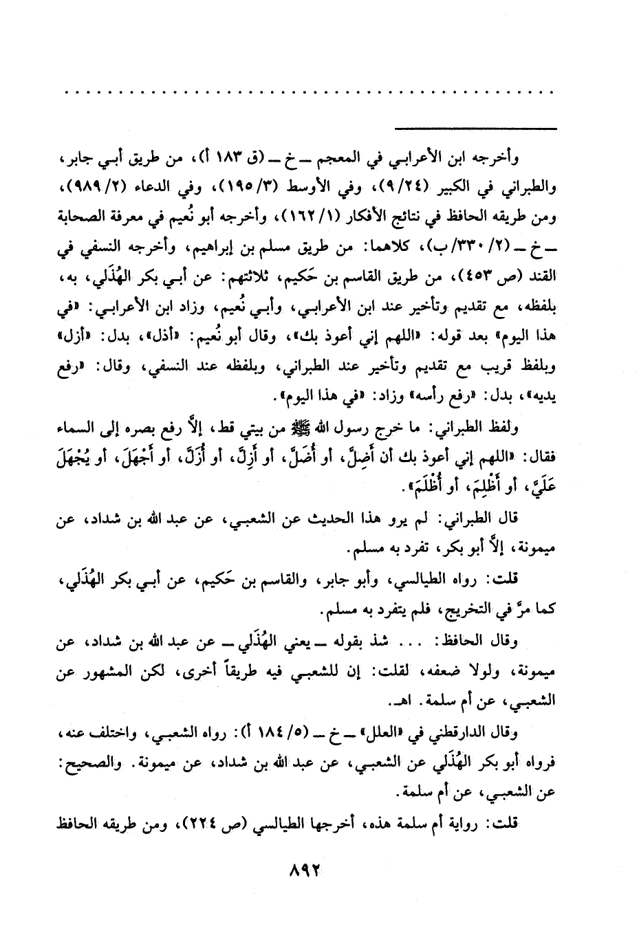 = وأخرجه ابن الأعرابي في المعجم -خ- (ق 183 أ)، من طريق أبي جابر، والطبراني في الكبير (24/ 9)، وفي الأوسط (3/ 195)، وفي الدعاء (2/ 989)، ومن طريقه الحافظ في نتائج الأفكار (1/ 162)، وأخرجه أبو نُعيم في معرفة الصحابة -خ- (2/ 330/ ب)، كلاهما: من طريق مسلم بن إبراهيم، وأخرجه النسفي في القند (ص 453)، من طريق القاسم بن حَكيم، ثلاثتهم: عن أبي بكر الهُذَلي، به، بلفظه، مع تقديم وتأخير عند ابن الأعرابي، وأبي نُعيم، وزاد ابن الأعرابي: "في هذا اليوم" بعد قوله: "اللهم إني أعوذ بك"، وقال أبو نُعيم: "أذل"، بدل: "أزل" وبلفظ قريب مع تقديم وتأخير عند الطبراني، وبلفظه عند النسفي، وقال: "رفع يديه"، بدل: "رفع رأسه" وزاد: "في هذا اليوم".