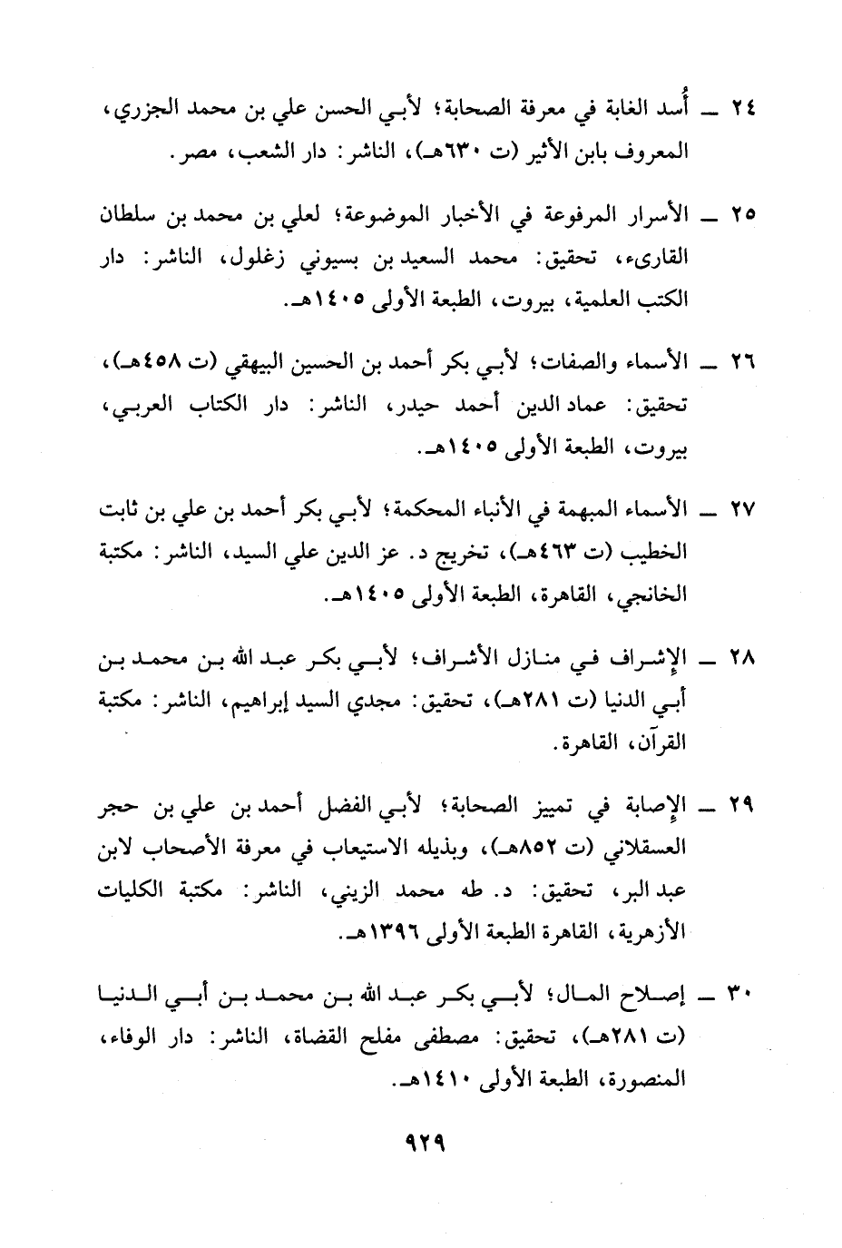24 - أُسد الغابة في معرفة الصحابة؛ لأبي الحسن علي بن محمَّد الجزري، المعروف بابن الأثير (ت 630 هـ)، الناشر: دار الشعب، مصر.