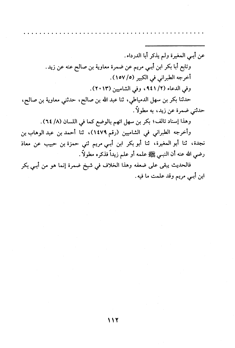 وأخرجه الطبراني في الشاميين (رقم 1479)، ثنا أحمد بن عبد الوهاب بن نجدة، ثنا أبو المغيرة، ثنا أبو بكر ابن أبي مريم ثني حمزة بن حبيب عن معاذ رَضِيَ اللَّهُ عَنْهُ أَنَّ النَّبِيَّ -صَلَّى اللَّهُ عليه وسلم- علمه أو علم زيدًا فذكره مطولًا.