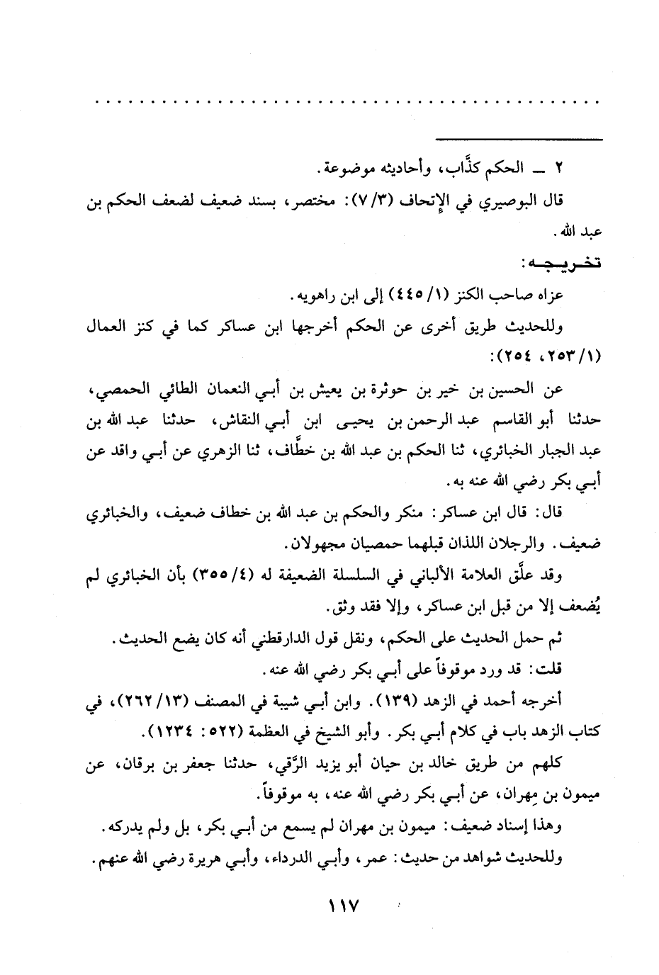 عن الحسين بن خير بن حوثرة بن يعيش بن أبي النعمان الطائي الحمصي، حدّثنا أبو القاسم عبد الرحمن بن يحيى ابن أبي النقاش، حدّثنا عبد الله بن عبد الجبار الخبائري، ثنا الحكم بن عبد الله بن خطَّاف، ثنا الزهري عن أبي واقد عن أبي بكر رضي الله عنه به.