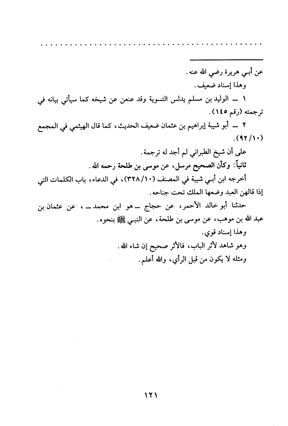 ثانيًا: وكأن الصحيح مرسل، عن موسى بن طلحة رحمه الله.