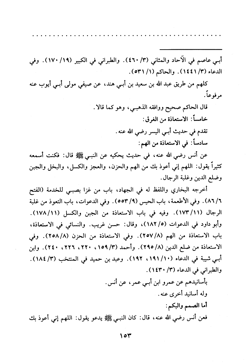 وأبو داود في الدعوات (5/ 182)، وقال: حسن غريب. والنسائي في الاستعاذة، باب الاستعاذة من الهم (8/ 257). وفي الاستعاذة من الحزن (8/ 258). وفي الاستعاذة من ضلع الدين (8/ 295). وأحمد (3/ 159، 220، 226، 240). وابن أبي شيبة في الدعاء (10/ 191، 192). وعبد بن حميد في المنتخب (3/ 184).