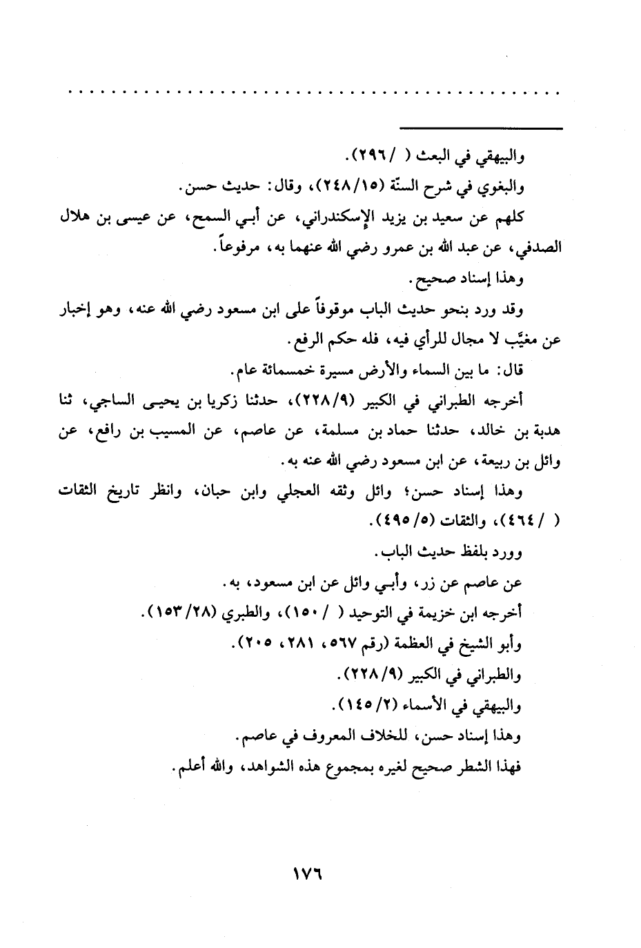 أخرجه الطبراني في الكبير (9/ 228)، حدّثنا زكريا بن يحيى الساجي، ثنا هدبة بن خالد، حدّثنا حماد بن مسلمة، عن عاصم، عن المسيب بن رافع، عن وائل بن ربيعة، عن ابن مسعود رضي الله عنه به.
