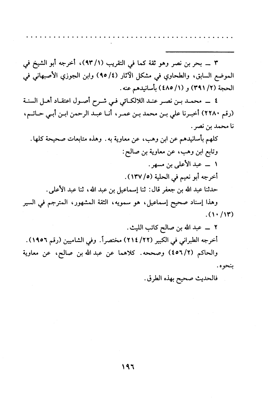 = 3 - بحر بن نصر وهو ثقة كما في التقريب (1/ 93)، أخرجه أبو الشيخ في الموضع السابق، والطحاوي في مشكل الآثار (4/ 95) وابن الجوزي الأصبهاني في الحجة (2/ 391) و (1/ 485) بأسانيدهم عنه.