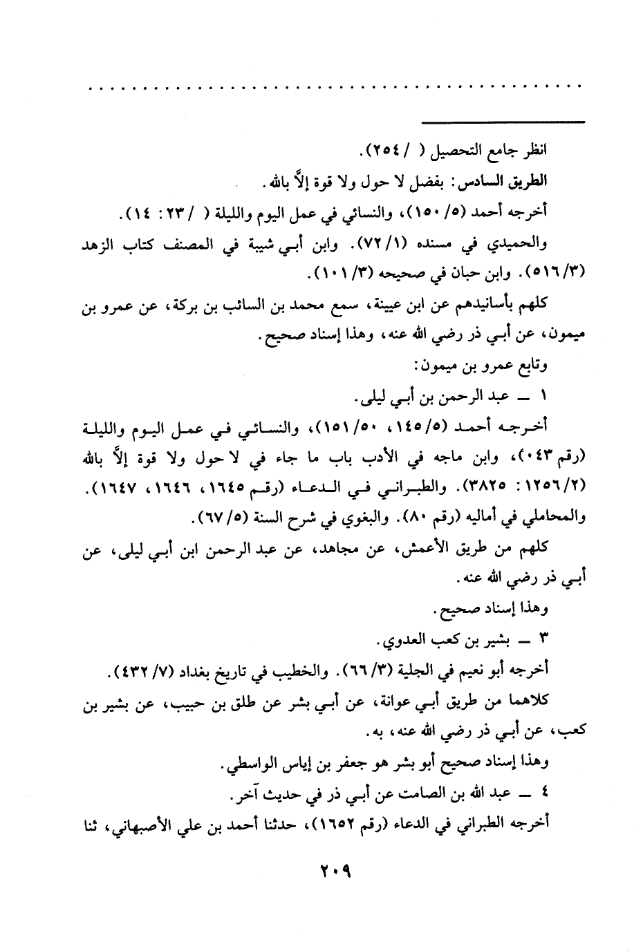 أخرجه أحمد (5/ 145، 50/ 151)، والنسائي في عمل اليوم والليلة (رقم 043)، وابن ماجه في الأدب باب ما جاء في لا حول ولا قوة إلَّا بالله (2/ 1256: 3825). والطبراني في الدعاء (رقم 1645، 1646، 1647).