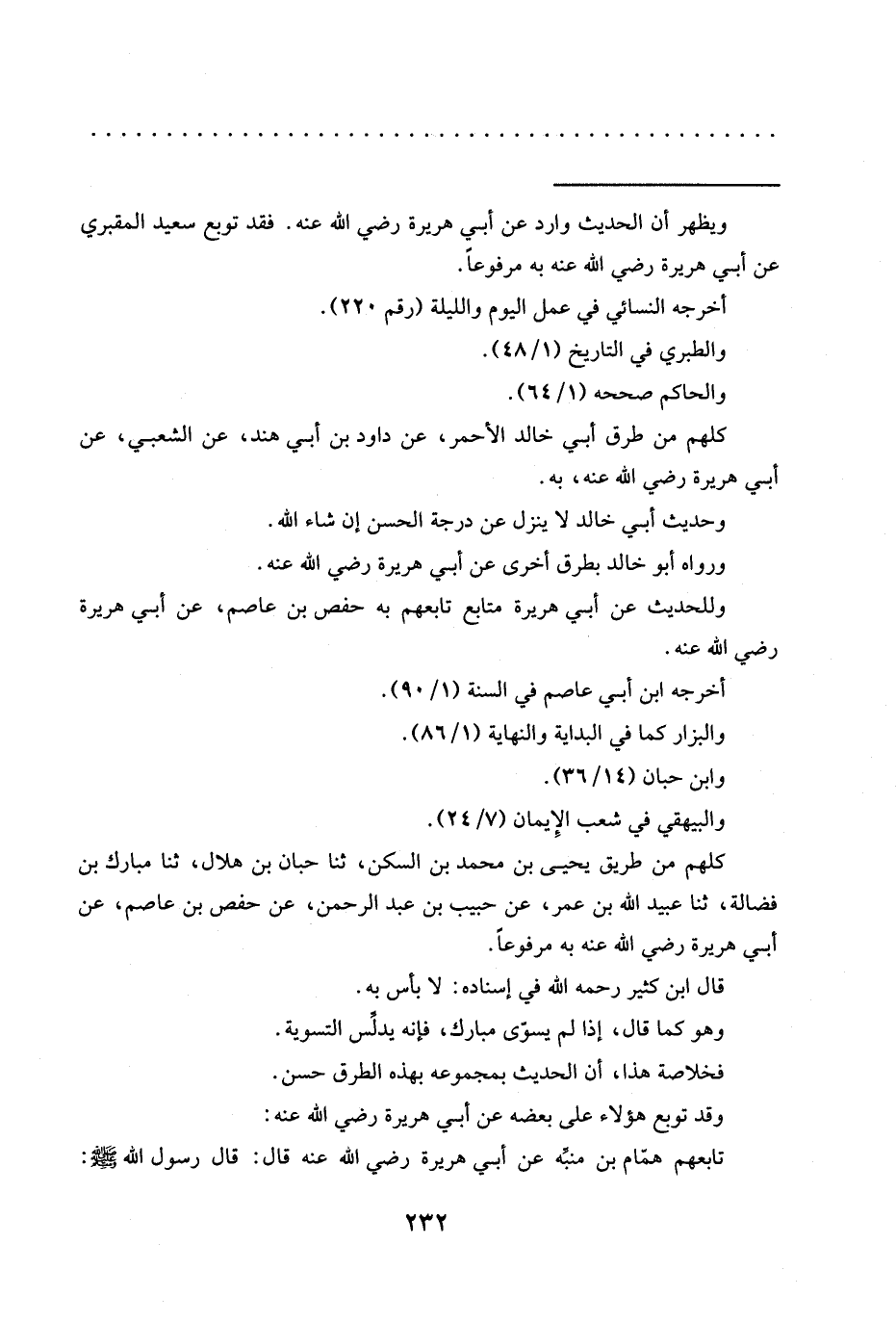 كلهم من طريق يحيى بن محمد بن السكن، ثنا حبّان بن هلال، ثنا مبارك بن فضالة، ثنا عبيد الله بن عمر، عن حبيب بن عبد الرحمن، عن حفص بن عاصم، عن أبي هريرة رضي الله عنه به مرفوعًا.