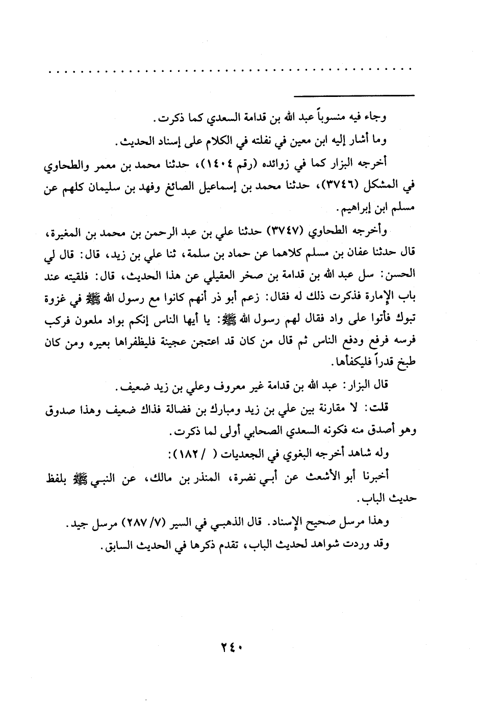 قلت: لا مقارنة بين علي بن زيد ومبارك بن فضالة فذاك ضعيف وهذا صدوق وهو أصدق منه فكونه السعدي الصحابي أولى لما ذكرت.