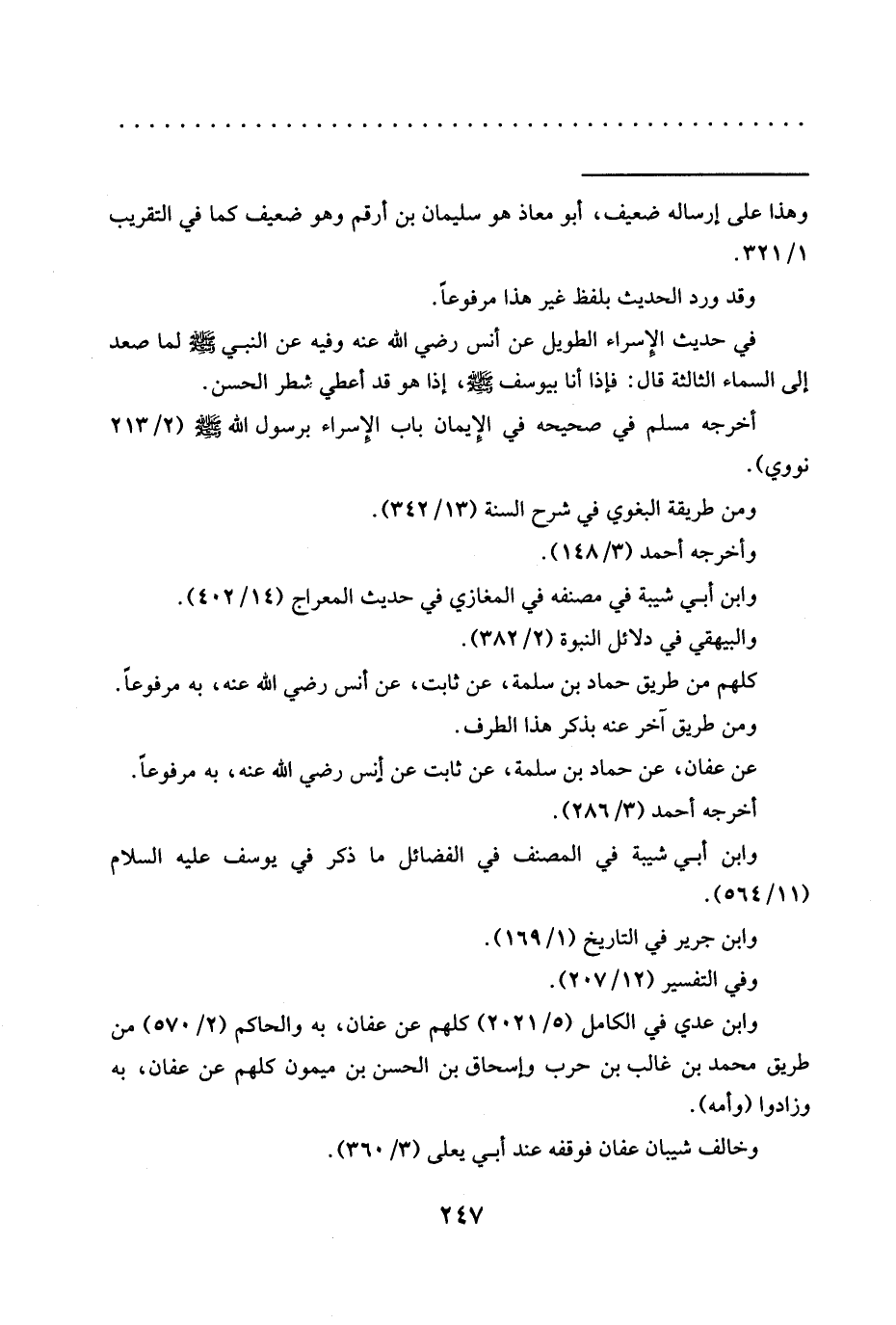 في حديث الإسراء الطويل عن أنس رضي الله عنه وفيه عن النبي -صلى الله عليه وسلم- لما صعد إلى السماء الثالثة قال: فإذا أنا بيوسف -صلى الله عليه وسلم-، إذا هو قد أعطي شطر الحسن.