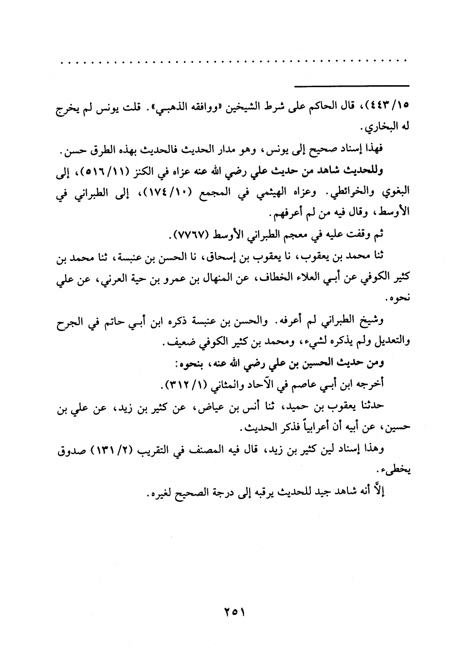 = 15/ 443)، قال الحاكم على شرط الشيخين ووافقه الذهبي. قلت يونس لم يخرج له البخاري.