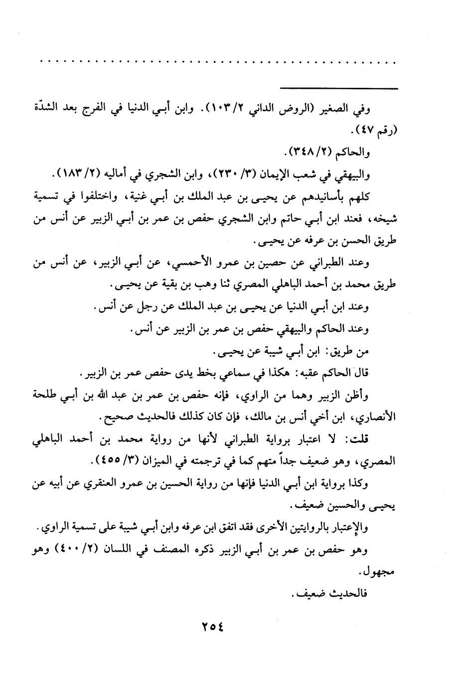 كلهم بأسانيدهم عن يحيى بن عبد الملك بن أبي غنية، واختلفوا في تسمية شيخه، فعند ابن أبي حاتم وابن الشجري حفص بن عمر بن أبي الزبير عن أنس من طريق الحسن بن عرفه عن يحيى.