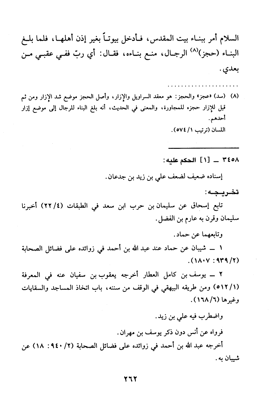 السلام أَمَرَ بِبِنَاءِ بَيْتِ الْمَقْدِسِ، فَأَدْخَلَ بُيُوتًا بِغَيْرِ إِذْنِ أَهْلِهَا، فَلَمَّا بَلَغَ الْبِنَاءُ (حُجَزَ) (¬8) الرِّجَالِ، منع بناءه، فَقَالَ: أَيْ رَبِّ فَفِي عَقِبِي مِنْ بَعْدِي.