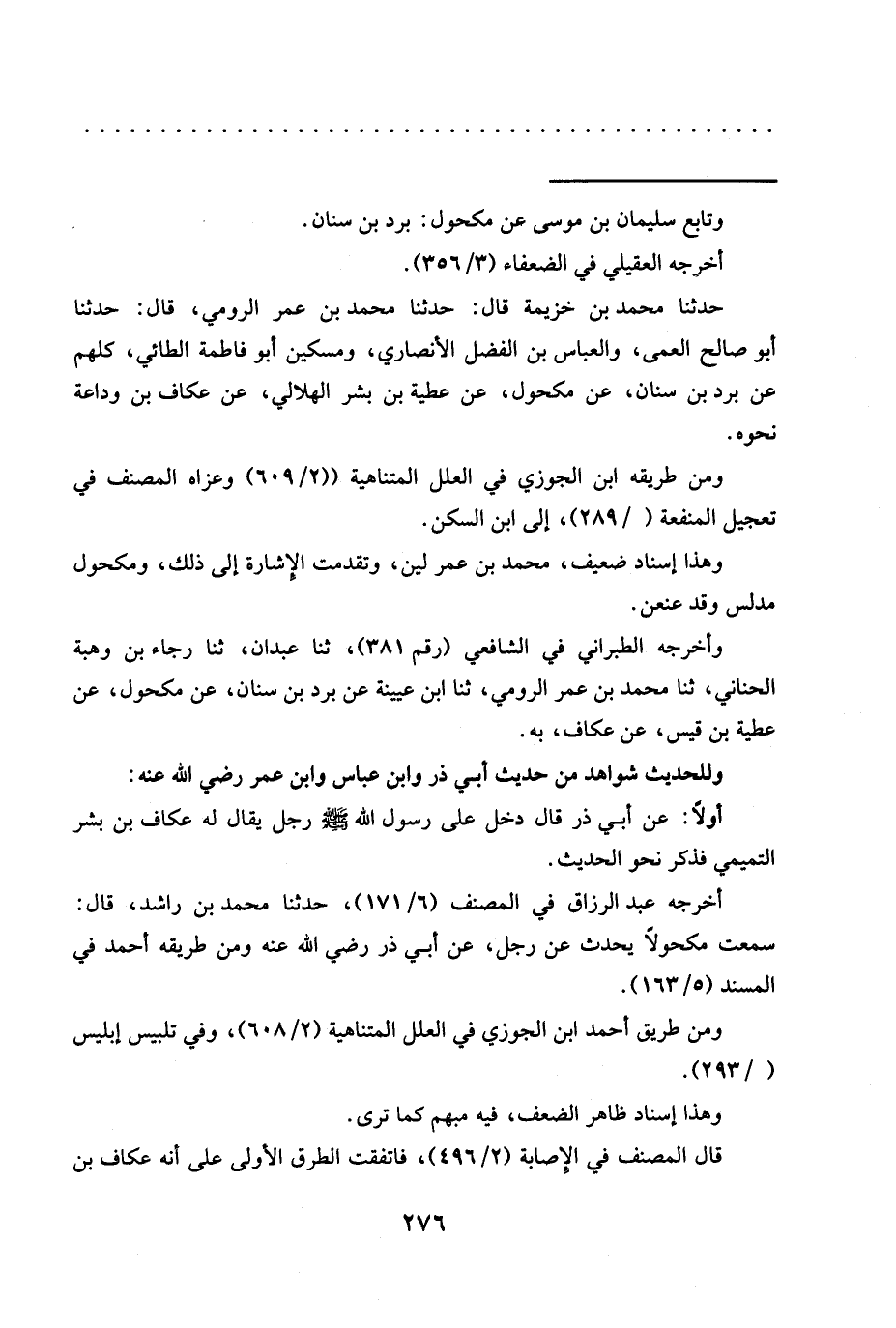 حدّثنا محمد بن خزيمة قال: حدّثنا محمد بن عمر الرومي، قال: حدّثنا أبو صالح العمى، والعباس بن الفضل الأنصاري، ومسكين أبو فاطمة الطائي، كلهم عن برد بن سنان، عن مكحول، عن عطية بن بشر الهلالي، عن عكاف بن وداعة نحوه.