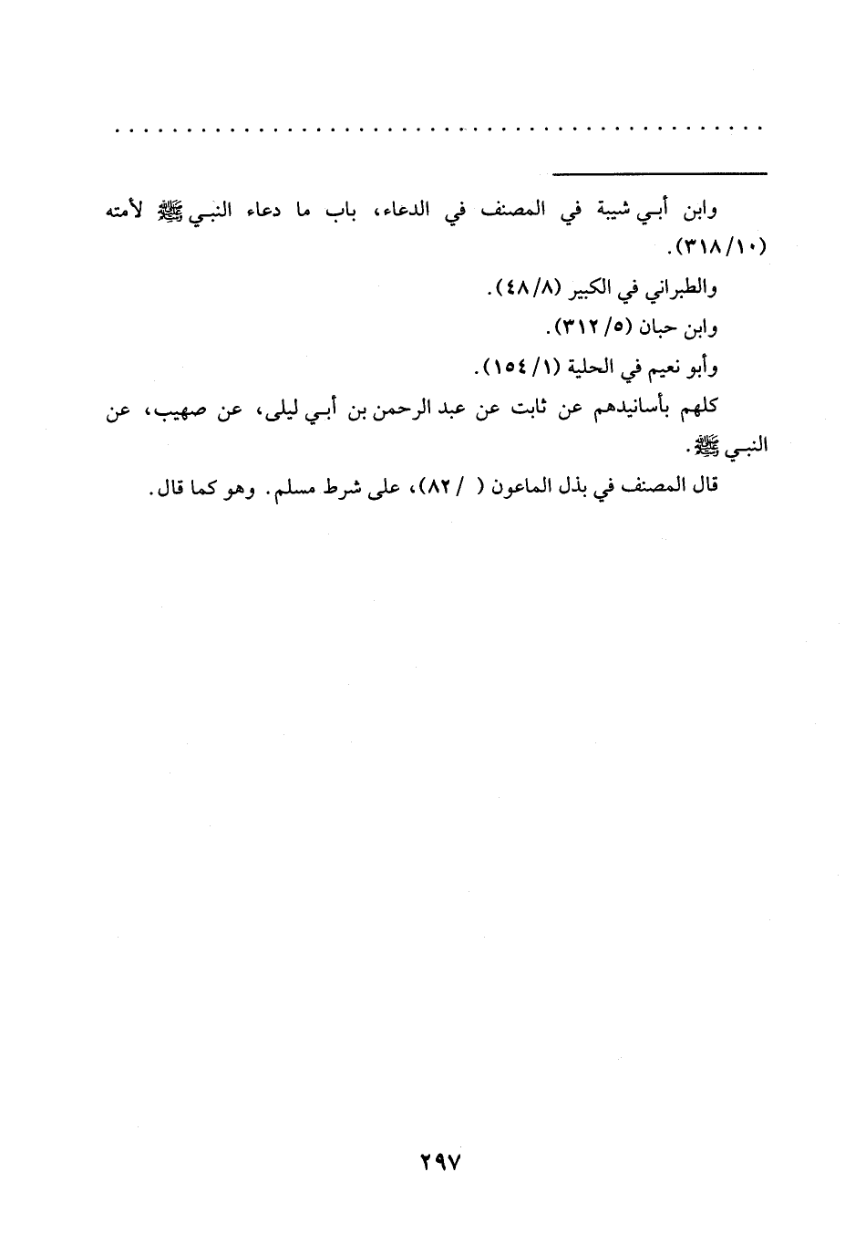 كلهم بأسانيدهم عن ثابت عَنْ عَبْدِ الرَّحْمَنِ بْنِ أَبِي لَيْلَى، عَنْ صهيب، عَنِ النَّبِيِّ -صَلَّى اللَّهُ عَلَيْهِ وَسَلَّمَ-.