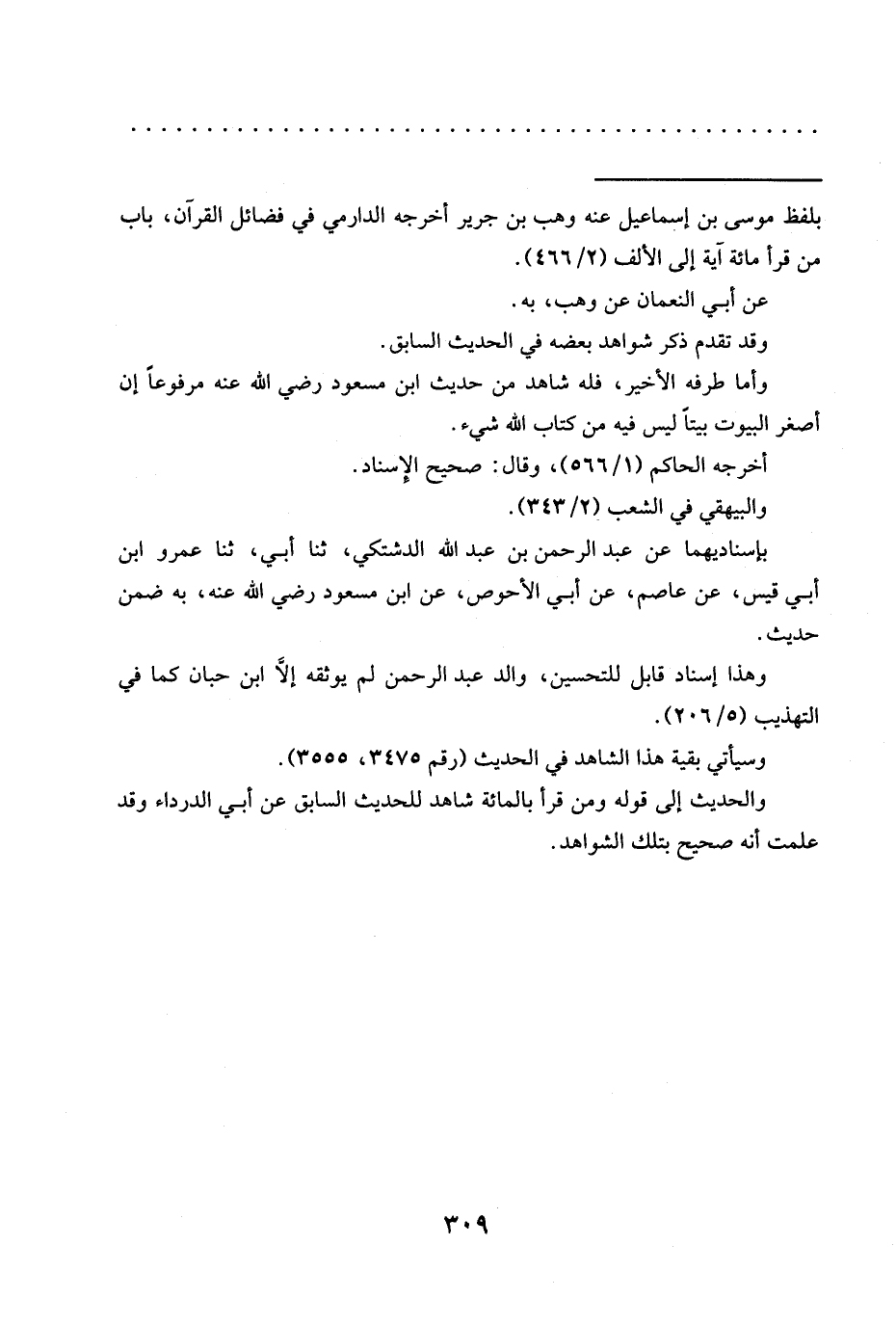 والحديث إلى قوله ومن قرأ بالمائة شاهد للحديث السابق عن أبي الدرداء وقد علمت أنه صحيح بتلك الشواهد.